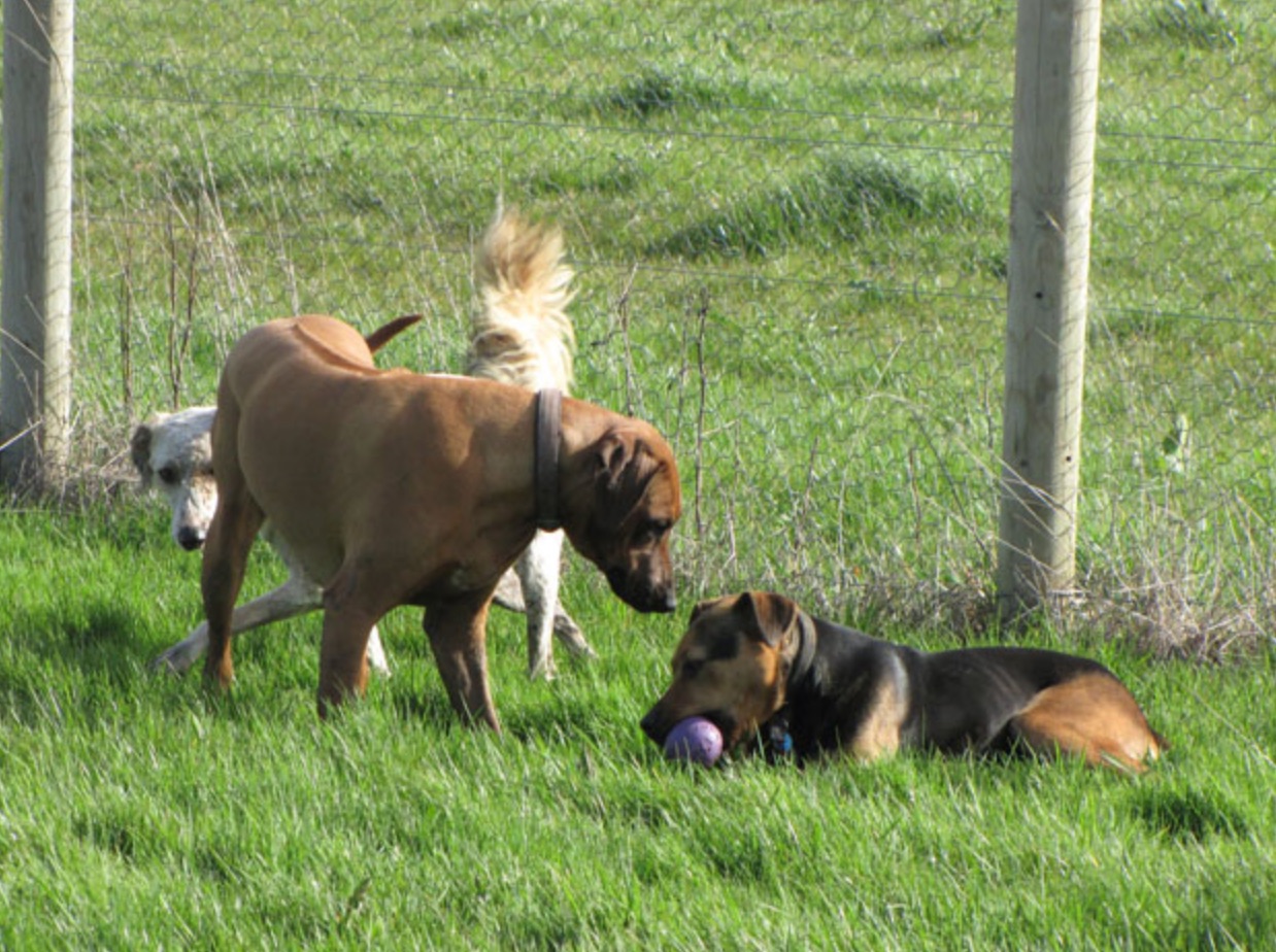 All our dogs are exercised twice a day in a fully secure two and half acre paddock. All our exercise is conducted off leash and dogs are accompanied by a experienced staff member. In summer, the swimming area offers great relief from the heat.