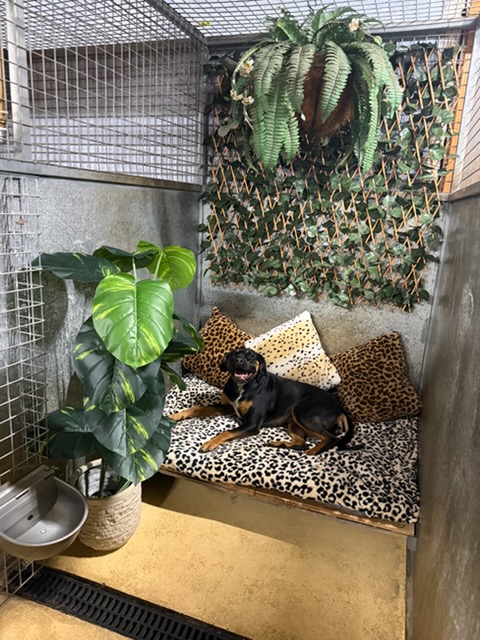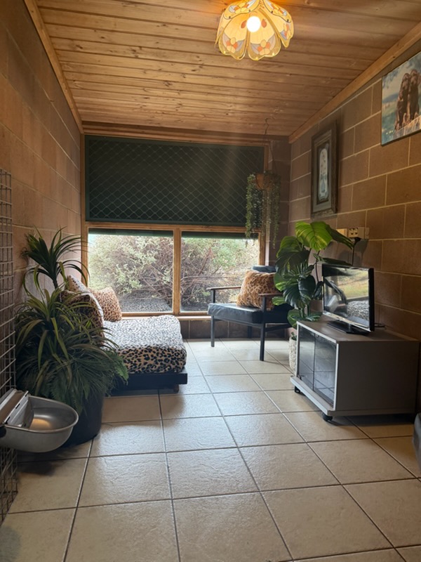 Deluxe pens include tv and a fully carpeted suite with igloo beds and their own outside play areas with safe and fun climbing facilities.